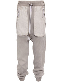 drawstring drop-crotch trousers Highlights - Light grey - Cotton blend - Elasticated drawstring waistband - Two adjustable straps - Two side zip-fastening pockets - Panelled design - Stretch-jersey - Two rear zip-fastening pockets - Ribbed ankles - Drop crotch Imported Composition Cotton 90%, Elastane 10% SIZE & FIT Model measurements Height 6 ft 2 in(1.88 m) Bust/Chest 34.25 in(87 cm) Hips 34.64 in(88 cm) Waist 26.77 in(68 cm) FittingInformation Designed with a dropped crotch, offering a loose and relaxed fit The ribbed hem at the ankle offers a close, comfortable fit Made from a midweight stretch fabric, this piece offers elasticity and flexibility when worn