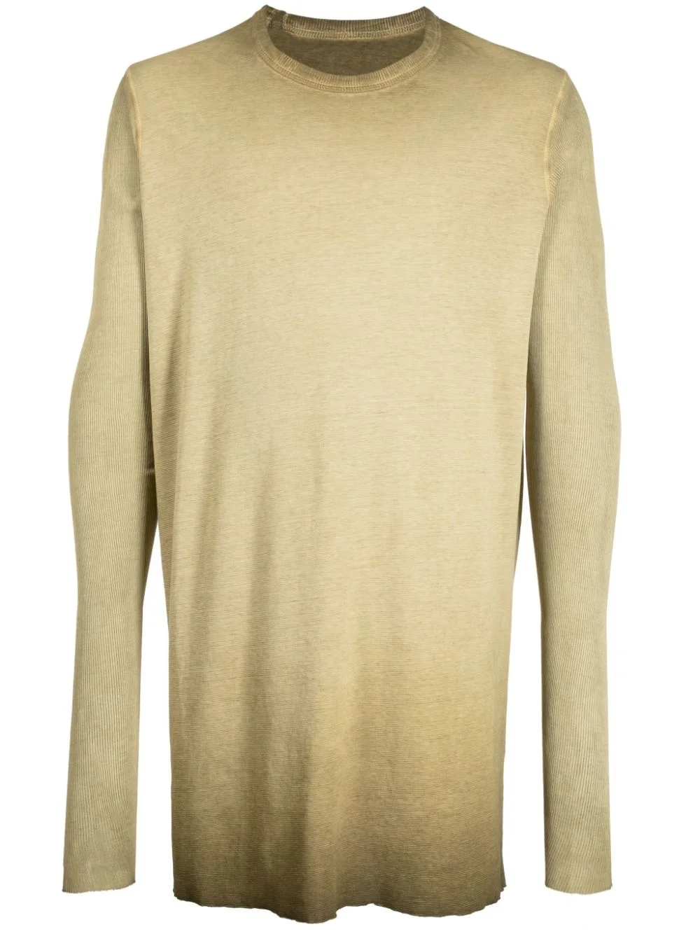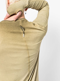 fine-ribbed long-sleeved T-shirt Highlights - Ochre yellow - Cotton - Faded effect - Fine ribbed - Lace-up detailing - Crew neck - Long sleeves - Thumb slot - Raw-cut edge Imported Composition Cotton 100% SIZE & FIT Model measurements Height 6 ft 2 in(1.89 m) Bust/Chest 37.4 in(95 cm) Hips 36.61 in(93 cm) Waist 28.34 in(72 cm) Measurement CHEST 40.15 in(102 cm) SLEEVE LENGTH 29.52 in(75 cm) Shoulder Width 17.32 in(44 cm) LENGTH 33.85 in(86 cm) FittingInformation Designed to be unstructured, offering a loose fit throughout Made from a midweight non-stretch fabric, this piece offers minimal elasticity when worn This piece fits true to size – take your usual size Washing instructions Hand Wash