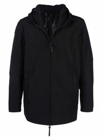hooded zip-up jacket black cotton-blend classic hood front zip fastening long sleeves two side zip-fastening pockets straight hem Imported Composition Polyethylene 100%, Cotton 58%, Nylon 42% SIZE & FIT Model measurements Height 6 ft 1 in(1.85 m) Bust/Chest 38.58 in(98 cm) Hips 37 in(94 cm) Waist 30.31 in(77 cm) Washing instructions Hand Wash