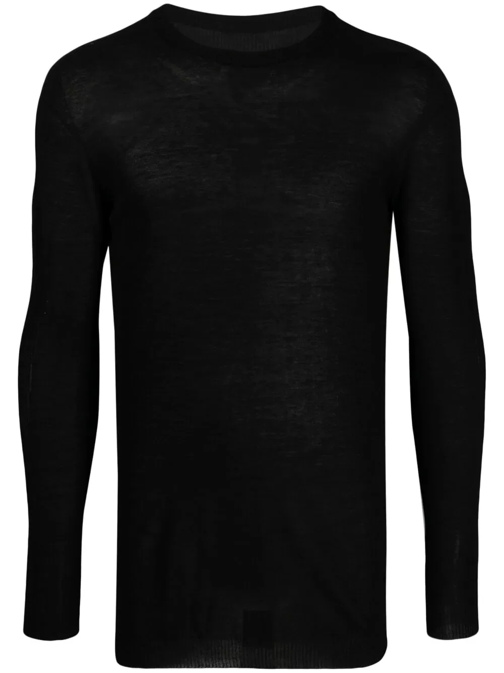 fine-knit cotton jumper black cotton fine knit long sleeves crew neck Made in Italy Composition Cotton 100% SIZE & FIT Model measurements Height 6 ft 2 in(1.89 m) Bust/Chest 35.43 in(90 cm) Hips 36.61 in(93 cm) Waist 28.74 in(73 cm) FittingInformation This piece fits true to size. We recommend you get your regular size Cut for a slim fit Made with a mid-weight fabric Washing instructions Hand Wash