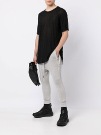 raglan short-sleeved T-shirt jet black cotton round neck short raglan sleeves high-low hem Imported Composition Cotton 50%, Polyester 50% SIZE & FIT Model measurements Height 6 ft 0 in(1.83 m) Bust/Chest 37.79 in(96 cm) Hips 37 in(94 cm) Waist 30.31 in(77 cm) FittingInformation This piece fits true to size. We recommend you get your regular size Cut for a loose fit Made with a mid-weight fabric Washing instructions Hand Wash
