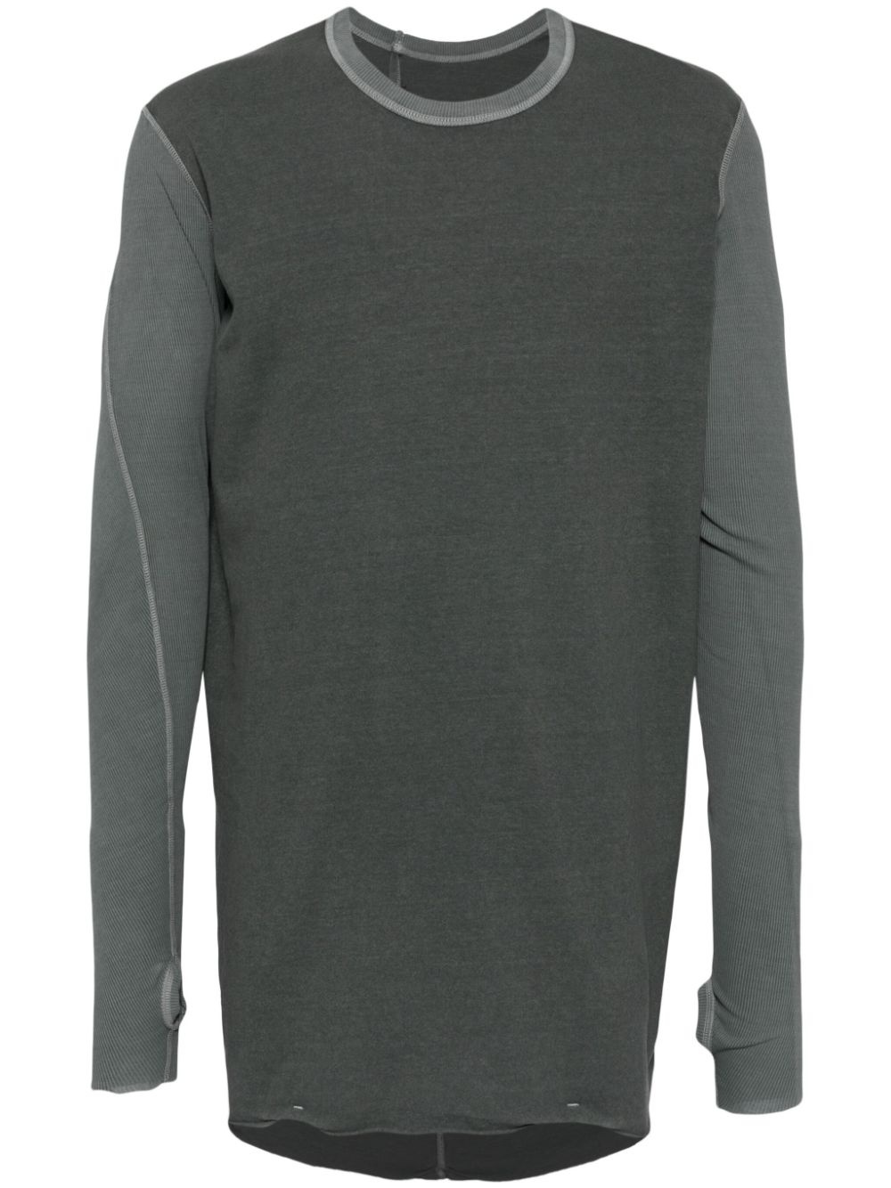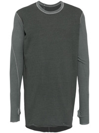 raw-cut edge long-sleeved T-shirt Highlights - Charcoal green - Cotton - Two-tone design - Crew neck - Fine ribbed - Strap detailing - Long sleeves - Glove sleeves - Raw-cut edge Imported Composition Cotton 100%