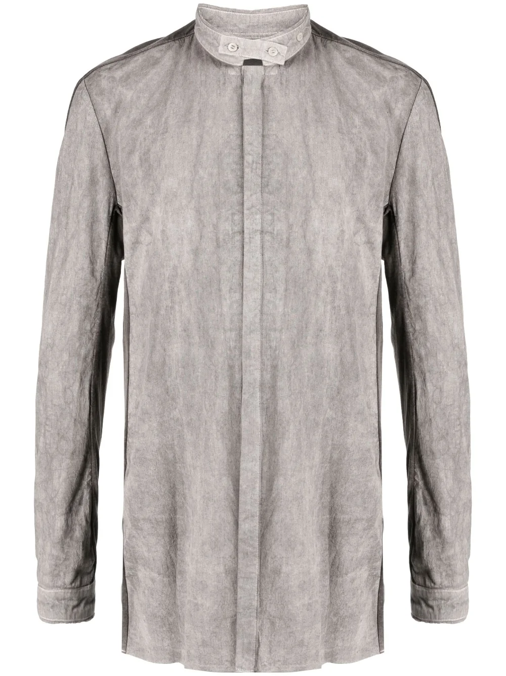 stand-up-collar cotton shirt Highlights - Grey - Cotton - Stand-up collar - Concealed front fastening - Long sleeves - Buttoned-cuff sleeves Imported Composition Body: Cotton 100% SIZE & FIT Model measurements Height 6 ft 2 in(1.87 m) Bust/Chest 34.25 in(87 cm) Hips 36.22 in(92 cm) Waist 29.52 in(75 cm) FittingInformation Designed for a slim fit, offering a comfortable fit that sits just away from the body Made from a midweight non-stretch fabric, this piece offers minimal elasticity when worn This piece fits true to size – take your usual size Washing instructions Hand Wash