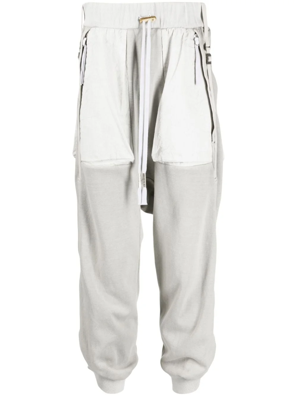 tapered cotton track pants Highlights - Heather grey - Cotton - Contrasting panel detail - Mid-rise - Tapered leg - Elasticated drawstring waistband - Two side zip-fastening pockets - Two rear zip-fastening pockets - Ribbed cuffs Imported Composition Cotton 100% SIZE & FIT Model measurements Height 6 ft 2 in(1.89 m) Bust/Chest 37.4 in(95 cm) Hips 36.61 in(93 cm) Waist 28.34 in(72 cm) FittingInformation Designed for a relaxed tapered leg, allowing a comfortable loose fit above the knee with a closer fit towards the calves The ribbed hem at the ankle offers a close, comfortable fit Made from a midweight non-stretch fabric, this piece offers minimal elasticity when worn This piece fits true to size – take your usual size Washing instructions Hand Wash