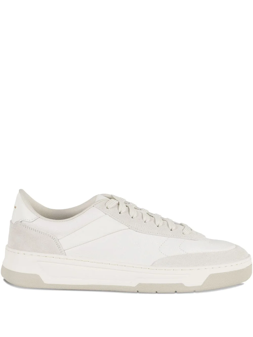 leather lace-up low-top sneakers Highlights - White - Leather upper - Suede heel panel - Round toe - Lace-up fastening - Flat sole Imported Composition Lining: Polyester 100% Outer: Suede 100%, Calf Leather 100% Sole: Rubber 100%
