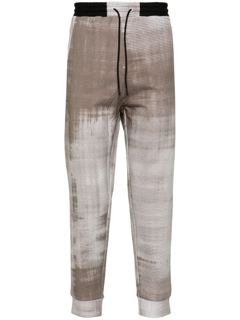 abstract-pattern track pants Highlights - Light brown/black - Cotton blend - Abstract pattern print - Elasticated waistband - Two side slit pockets - Rear slit pocket - Tapered leg - Elasticated ankles - Rubberised logo detail - Drawstring fastening Imported Composition Cotton 80%, Polyester 15%, Elastane 5% SIZE & FIT Model measurements Height 6 ft 2 in(1.87 m) Bust/Chest 36.41 in(92.5 cm) Hips 35.43 in(90 cm) Waist 29.52 in(75 cm) FittingInformation Designed for a relaxed tapered leg, allowing a comfortable loose fit above the knee with a closer fit towards the calves Adjust this piece’s waistband to your preference using the drawstring Made from a midweight stretch fabric, this piece offers elasticity and flexibility when worn This piece fits true to size – take your usual size