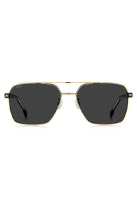 DETAILS Add luxurious edge to your look with the gold-tone steel of these BOSS Menswear sunglasses. Black-acetate temples with logo and stripe details. Front material: Steel Temple material: Acetate Hinge type: Regular Lens material: Polyester Size lens: 2.28 in (58 mm) (0 inches) Size bridge: 0.67 in (17 mm) (0 inch.) Temple Length: 5.9 in (150 mm) (0 inches) BOSS 1846/G/S2M258IR - 58609825