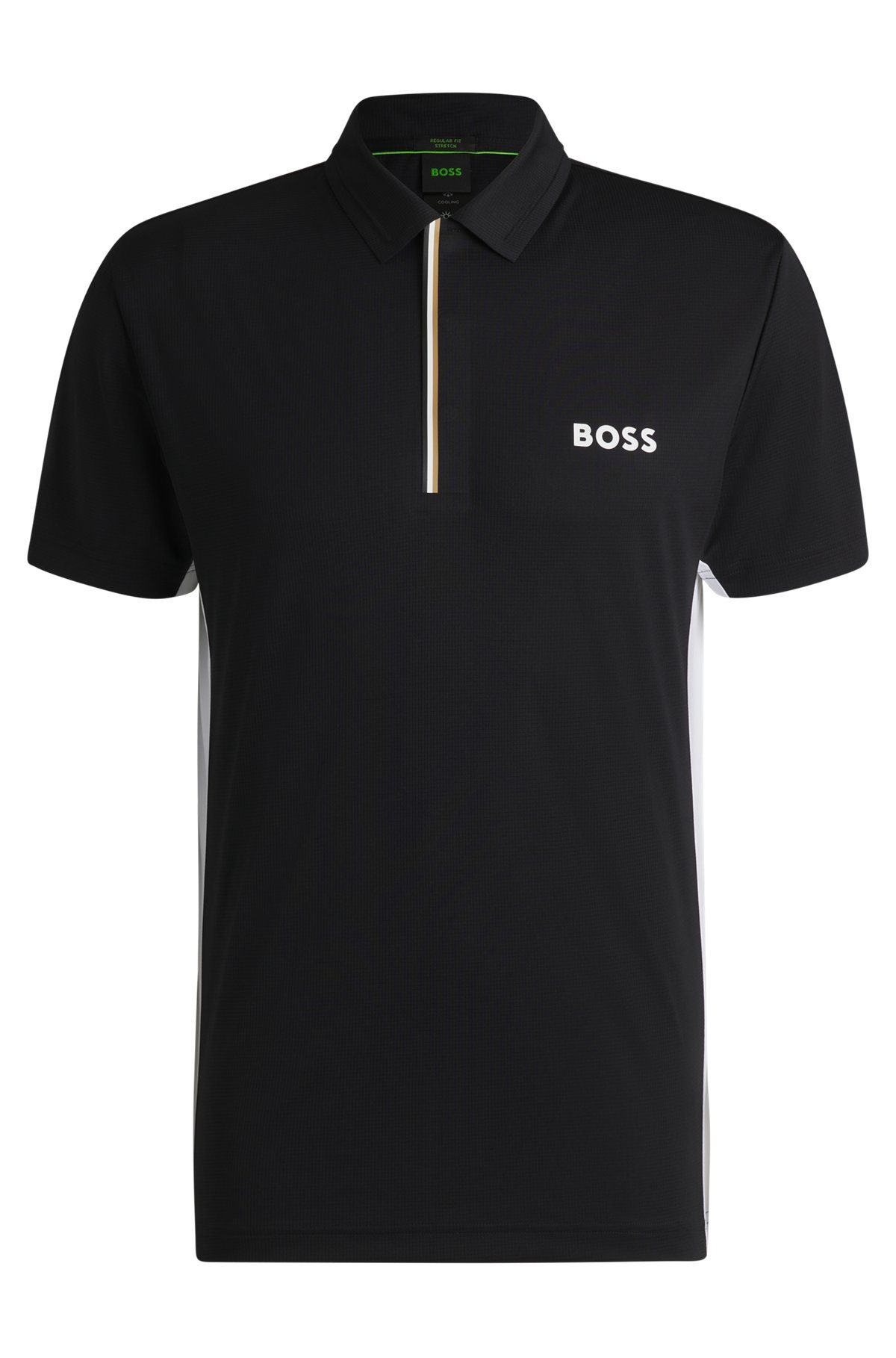 SIZE AND FIT The model wears a size M and is 6'2" tall with a, 36" chest, 31" waist and 38" hips. DETAILS Paddytech Pro - 50538123 With ergonomic armholes for improved agility, this BOSS Menswear polo shirt is made in stretch ripstop with moisture management. Sporty side-seam color-blocking. Regular fit Neckline: Polo collar Short sleeves Standard length QUALITY & CARE INSTRUCTIONS Do Not Bleach Do Not Tumble Dry Do Not Dry Clean Iron Low Heat Machine Wash Cold Gentle Quality: 100% Polyester