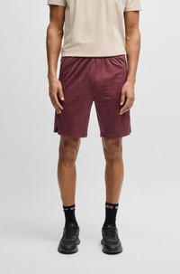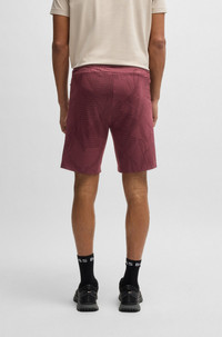 SIZE AND FIT The model wears a size L and is 6'2" tall with a, 37" chest, 30" waist and 36" hips. DETAILS Hecon Desert Active - 50537740 With an adjustable waistband, these BOSS Menswear shorts feature four-way stretch for flexibility. Cooling, quick-dry fabric for active comfort. Decorative reflective details. Regular fit Drawstring Pockets bottom front: Zip pockets QUALITY & CARE INSTRUCTIONS Machine Wash Cold Gentle Do Not Dry Clean Quality: 92% Polyester (23% recycled), 8% Elastane Do Not Tumble Dry Iron Low Heat Do Not Bleach