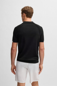 SIZE AND FIT The model wears a size M and is 6'2" tall with a, 36" chest, 31" waist and 38" hips. DETAILS K_Perform-Max_PL - 50537146 Crafted in a breathable blend, this golf-inspired BOSS Menswear knit polo is engineered for active comfort. Slim fit. Micro-structured body mapping. Perforated underarms. Slim fit Neckline: Polo collar Short sleeves Standard length QUALITY & CARE INSTRUCTIONS Do Not Bleach Do Not Tumble Dry Machine Wash Cold Gentle Iron Medium Heat Quality: 50% Cotton, 50% Lyocell Do Not Dry Clean