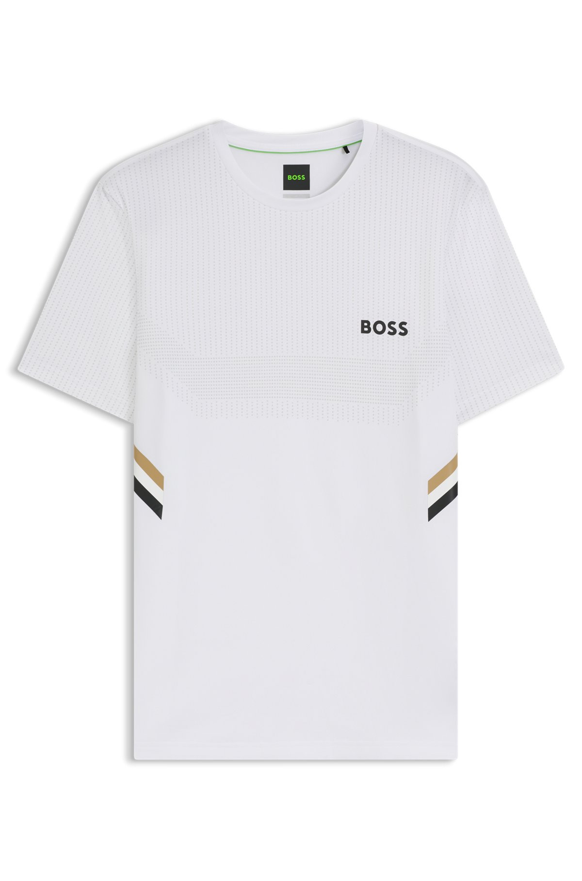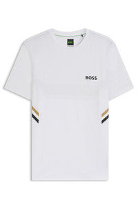 DETAILS Tee Tech TOC - 50543329 This slim-fitting BOSS Menswear T-shirt offers dependable moisture management and odor control for active days. Logo detail and printed artwork. Stretch pique for comfort. Slim fit Neckline: Crew neck Short sleeves Standard length QUALITY & CARE INSTRUCTIONS Quality: 93% Polyester, 7% Elastane Do Not Tumble Dry Do Not Dry Clean Iron Low Heat Do Not Bleach Machine Wash Cold Gentle