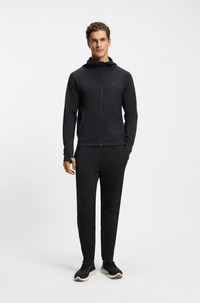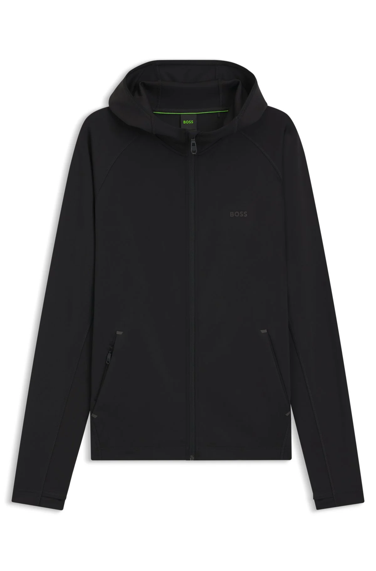 SIZE AND FIT The model wears a size M and is 6'0" tall with a, 36" chest, 31" waist and 35" hips. DETAILS Sicon Active - 50531224 Trimmed with decorative reflective details, this BOSS Menswear hoodie is a high-performance layer for workouts. Shaped hood. Secure zipped pocket. Easy regular fit. Regular fit Neckline: Hooded Fastening top: Zip closure Pockets top: Side-entry pockets Long sleeves Standard length QUALITY & CARE INSTRUCTIONS Machine Wash Cold Gentle Iron Low Heat Quality: 92% Polyester, 8% Elastane Do Not Tumble Dry Do Not Dry Clean Do Not Bleach