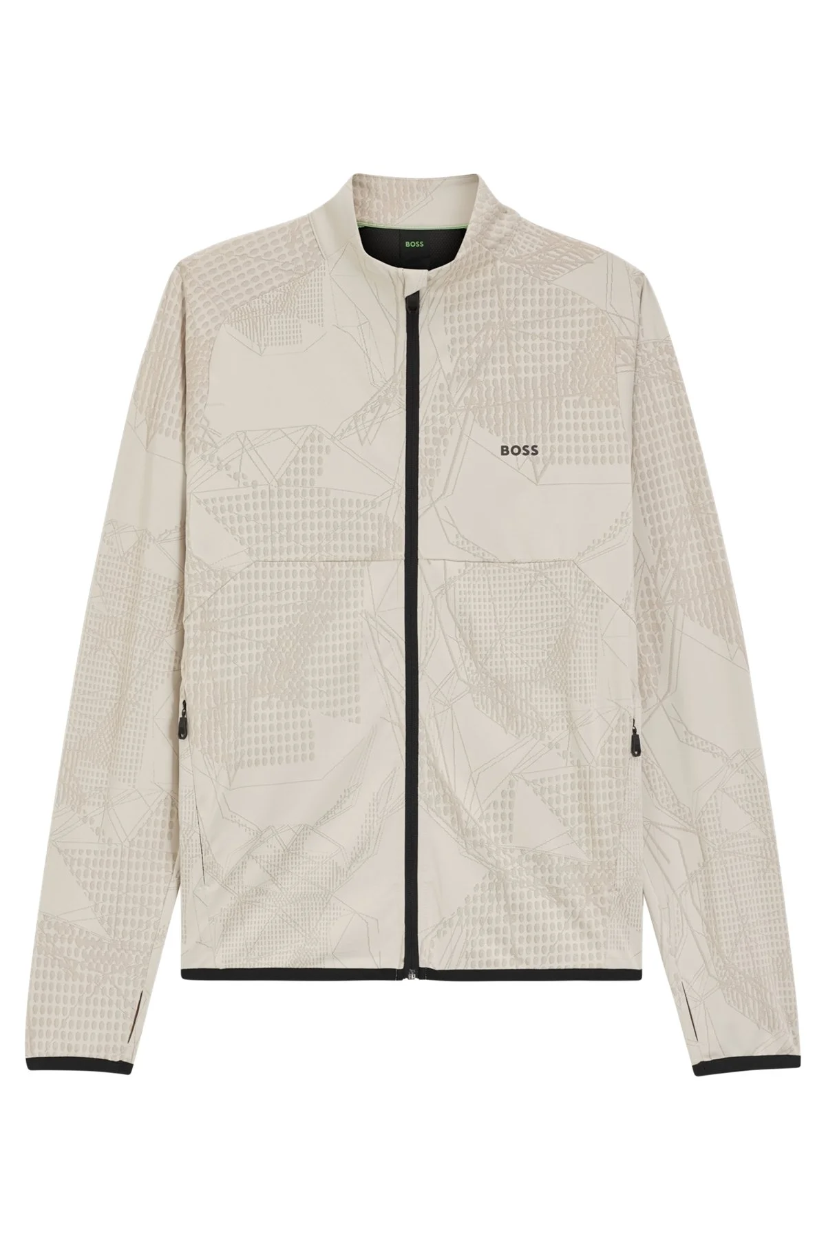DETAILS Sweat Desert Active - 50537752 With rear ventilation, four-way stretch and moisture management, this zip-up BOSS Menswear sweatshirt is packed with functionality. Decorative reflective details. Layerable regular fit. Regular fit Neckline: Stand collar Fastening top: Zip closure Pockets top: Zip pockets Long sleeves Standard length QUALITY & CARE INSTRUCTIONS Do Not Bleach Do Not Tumble Dry Do Not Dry Clean Quality: 92% Polyester (23% recycled), 8% Elastane, pocketing: 100% Polyester Iron Low Heat Machine Wash Cold Gentle