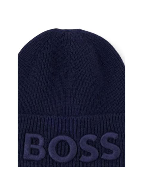 Afox_R beanie hat Highlights - Light beige - Embroidered lettering - Ribbed knit - Turn-up brim Imported Composition Wool 60%, Polyacrylic 40%
