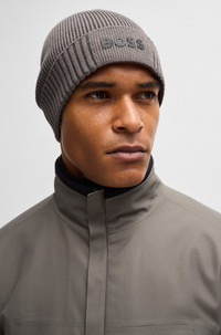SIZE AND FIT The model wears a size pce. and is 6'2" tall with a, 38" chest, 29" waist and 36" hips. DETAILS Asic_Beanie-X - 50499423 Bring a signature touch to outerwear with this ribbed beanie hat by BOSS Menswear. Crafted in soft cotton blended with virgin wool. Rubber-printed logo. QUALITY & CARE INSTRUCTIONS Reduced Dry Clean Machine Wash Cold Do Not Bleach Quality: 80% Cotton, 20% Virgin wool Iron Low Heat Do Not Tumble Dry