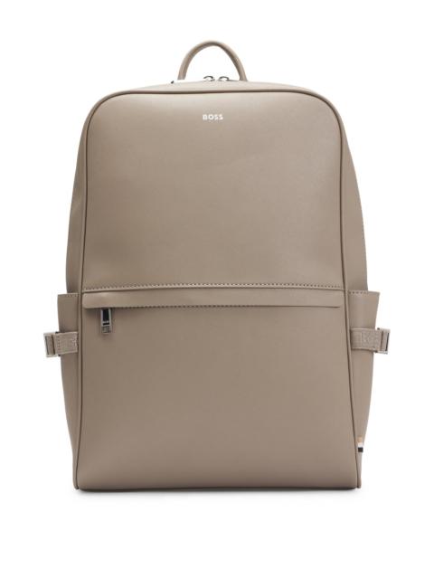 SIZE AND FIT The model wears a size pce. and is 6'2" tall with a, 37" chest, 30" waist and 37" hips. DETAILS Zair_Backpack - 50485589 A modern backpack in structured material by BOSS. Featuring signature-stripe webbing, this accessory is detailed with a logo trim. Measurements: 41 x 28 x 12cms. Length: 28,0 cm (11.0 inches) Width: 12,0 cm (4.7 inches) Height: 41,0 cm (16.1 inches) Fastening top: Two-way zip closure 1 inside zip pocket Hardware finishing: Polished silver hardware Exterior embossed logo Top handle Packaging: Dust bag QUALITY & CARE INSTRUCTIONS Quality: 100% Regenerated leather, Lining: 100% Polyester, Facing: 100% Polyester, 100% Polyamide