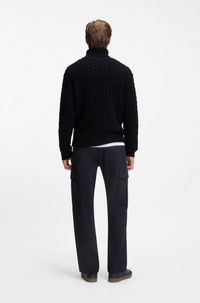 SIZE AND FIT The model wears a size M and is 6'2" tall with a, 36" chest, 29" waist and 36" hips. DETAILS Add a touch of luxury to your everyday staples with the wool-cashmere cable knit of this BECKHAM x BOSS sweater. Relaxed fit. BECKHAM x BOSS brings effortless style with timeless and elevated statement pieces, inspired by David’s wardrobe. Relaxed fit Neckline: Turtleneck Long sleeves Standard length Herrero_DB - 50554338 QUALITY & CARE INSTRUCTIONS Cold, gentle machine wash; reduced spin speed. Reduced Dry Clean Do Not Bleach Material: 90% Virgin wool, 10% Cashmere Iron Low Heat Do Not Tumble Dry