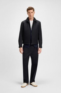 SIZE AND FIT The model wears a size 38R and is 6'2" tall with a, 35" chest, 27" waist and 37" hips. DETAILS Comano_DB - 50549075 Ideal for wear between the seasons, this BECKHAM x BOSS men's jacket is designed in a soft cotton blend with minimalist detailing. Clean zip closure. BECKHAM x BOSS brings effortless style with timeless and elevated statement pieces, inspired by David’s wardrobe. Regular fit Shirt Collar Fastening top: Zip closure Pockets top: Single welt pocket Inside jet pocket with button Self fabric cuffs Fully lined Standard length Fit back length: 66 cm (26 inches) QUALITY & CARE INSTRUCTIONS Reduced Dry Clean Do Not Bleach Do Not Tumble Dry Do Not Wash Iron Low Heat Quality: 65% Cotton, 35% Elastomultiester, Sleeve lining: 100% Viscose