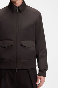 SIZE AND FIT The model wears a size 40R and is 6'2" tall with a, 36" chest, 29" waist and 36" hips. DETAILS Elevate casual looks with the water-repellent twill of this BECKHAM x BOSS men's jacket. Stretch-wool knitted trims. BECKHAM x BOSS brings effortless style with timeless and elevated statement pieces, inspired by David’s wardrobe. Point collar Fastening top: Zip closure Pockets top: Patch pockets Elasticized cuffs Fully lined Fit back length: 66 cm (26 inches) Cinsun_DB - 50557631 QUALITY & CARE INSTRUCTIONS Reduced Dry Clean Do Not Bleach Iron Low Heat Do Not Tumble Dry Material: 66% Polyester, 34% Cotton, Lining: 100% Cotton, Sleeve lining: 100% Viscose, Wadding: 100% Polyester Do Not Wash