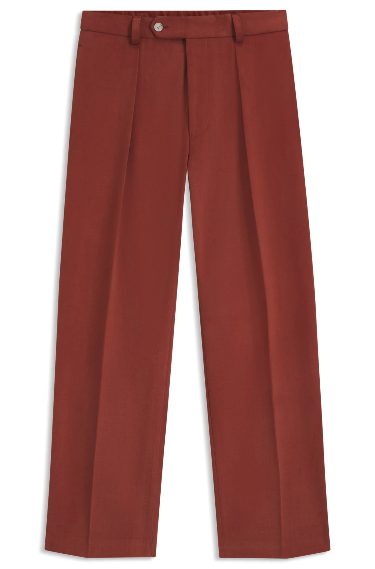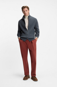 SIZE AND FIT The model wears a size 32R and is 6'2" tall with a, 36" chest, 29" waist and 36" hips. DETAILS Invest in versatile formal style with the subtle pattern and pleat-front design of these BECKHAM x BOSS men's trousers. 100% cotton. BECKHAM x BOSS brings effortless style with timeless and elevated statement pieces, inspired by David’s wardrobe. Button and zip closure Elastic Waistband Pleat front Pockets bottom front: Side slash pockets Pockets bottom back: Welt pocket Partially lined Trousers-252_DB - 50554875 QUALITY & CARE INSTRUCTIONS Do Not Wash Dry Clean Only Iron Medium Heat Material: 100% Cotton, pocketing: 100% Cotton Do Not Bleach Do Not Tumble Dry