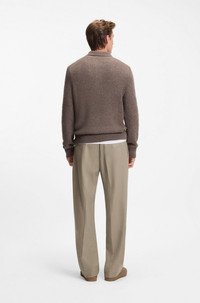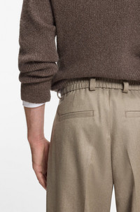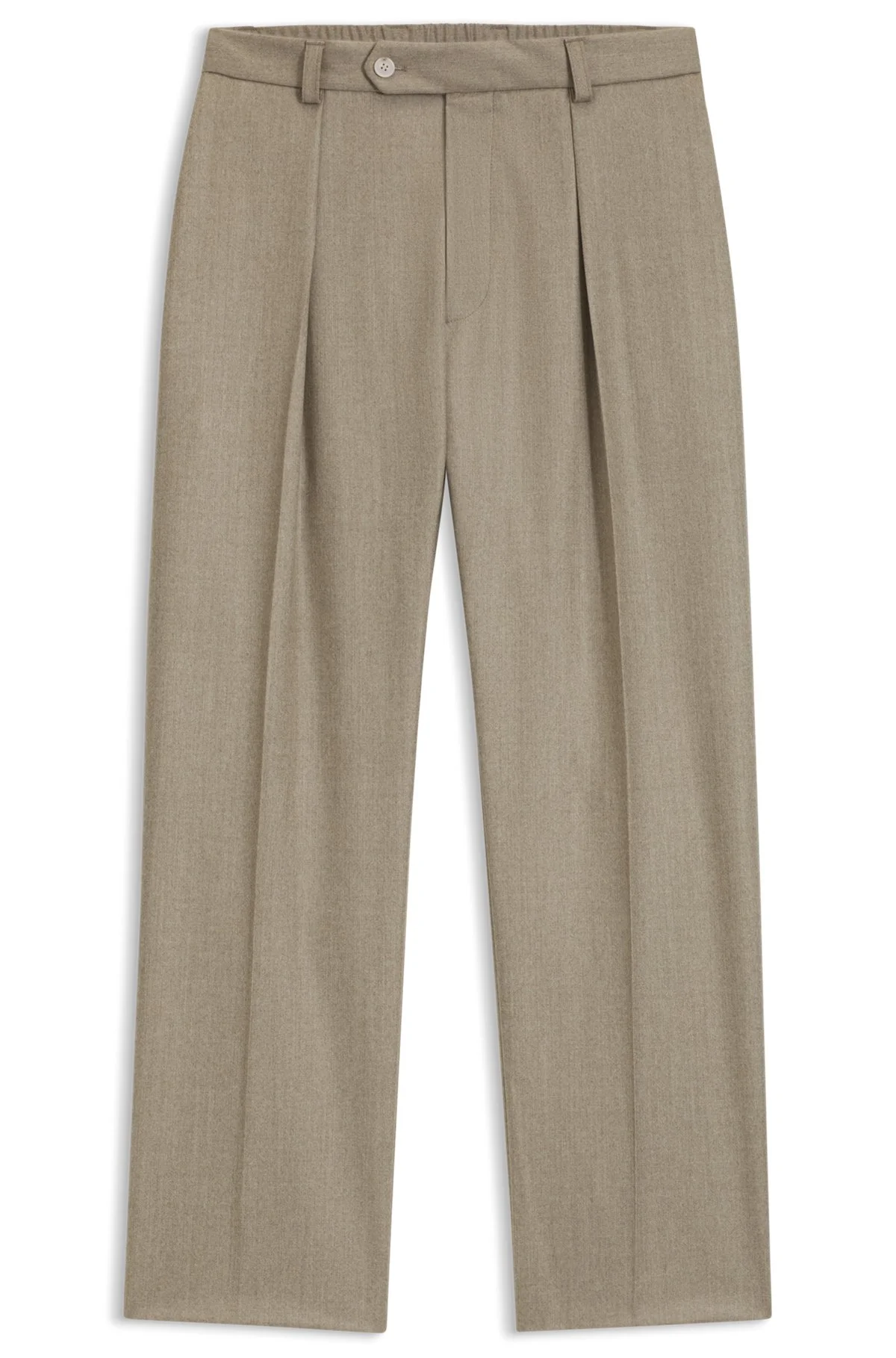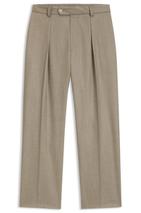 SIZE AND FIT The model wears a size 34R and is 6'2" tall with a, 36" chest, 29" waist and 36" hips. DETAILS With front pleats, these relaxed-fit BECKHAM x BOSS men's trousers create a flattering silhouette. Crafted in virgin wool. Partially elasticated waistband for comfort. BECKHAM x BOSS brings effortless style with timeless and elevated statement pieces, inspired by David’s wardrobe. Relaxed fit Button and zip closure Elastic Waistband Pleat front Pockets bottom front: Side slash pockets Pockets bottom back: Welt pocket Partially lined Trousers-252_DB - 50554905 QUALITY & CARE INSTRUCTIONS Reduced Dry Clean Do Not Bleach Material: 100% Virgin wool, pocketing: 100% Cotton Do Not Tumble Dry Iron Medium Heat Do Not Wash