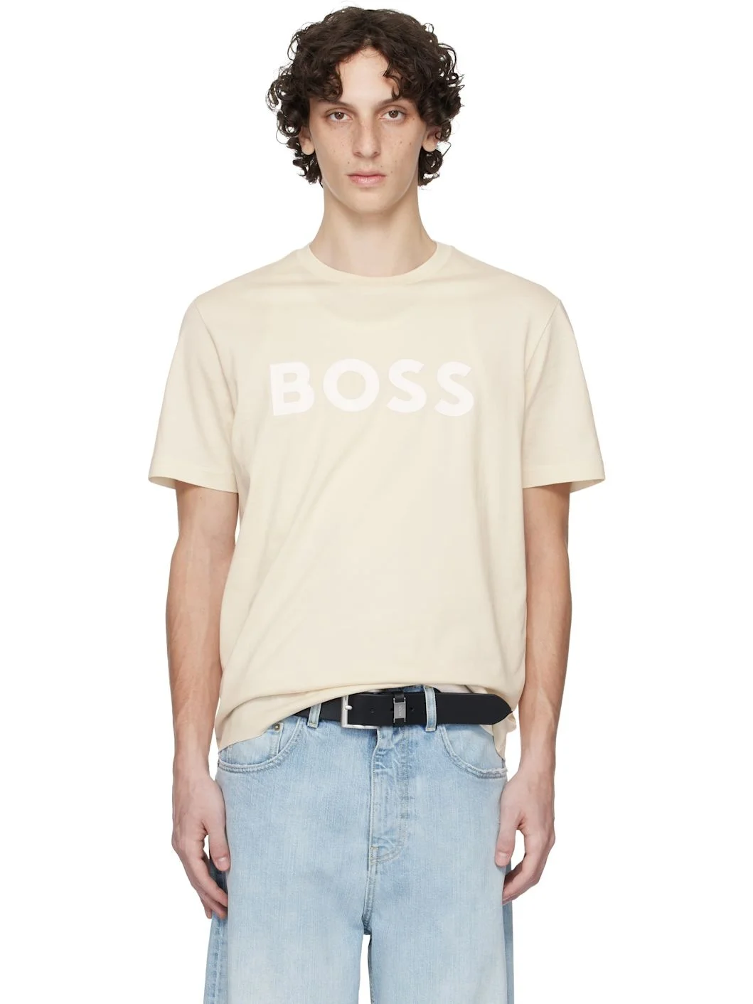 Cotton jersey T-shirt. · Rib-knit crewneck · Logo printed at front · Logo flag at side seam Supplier color: Open white 100% cotton. Made in Bangladesh 252085M213005