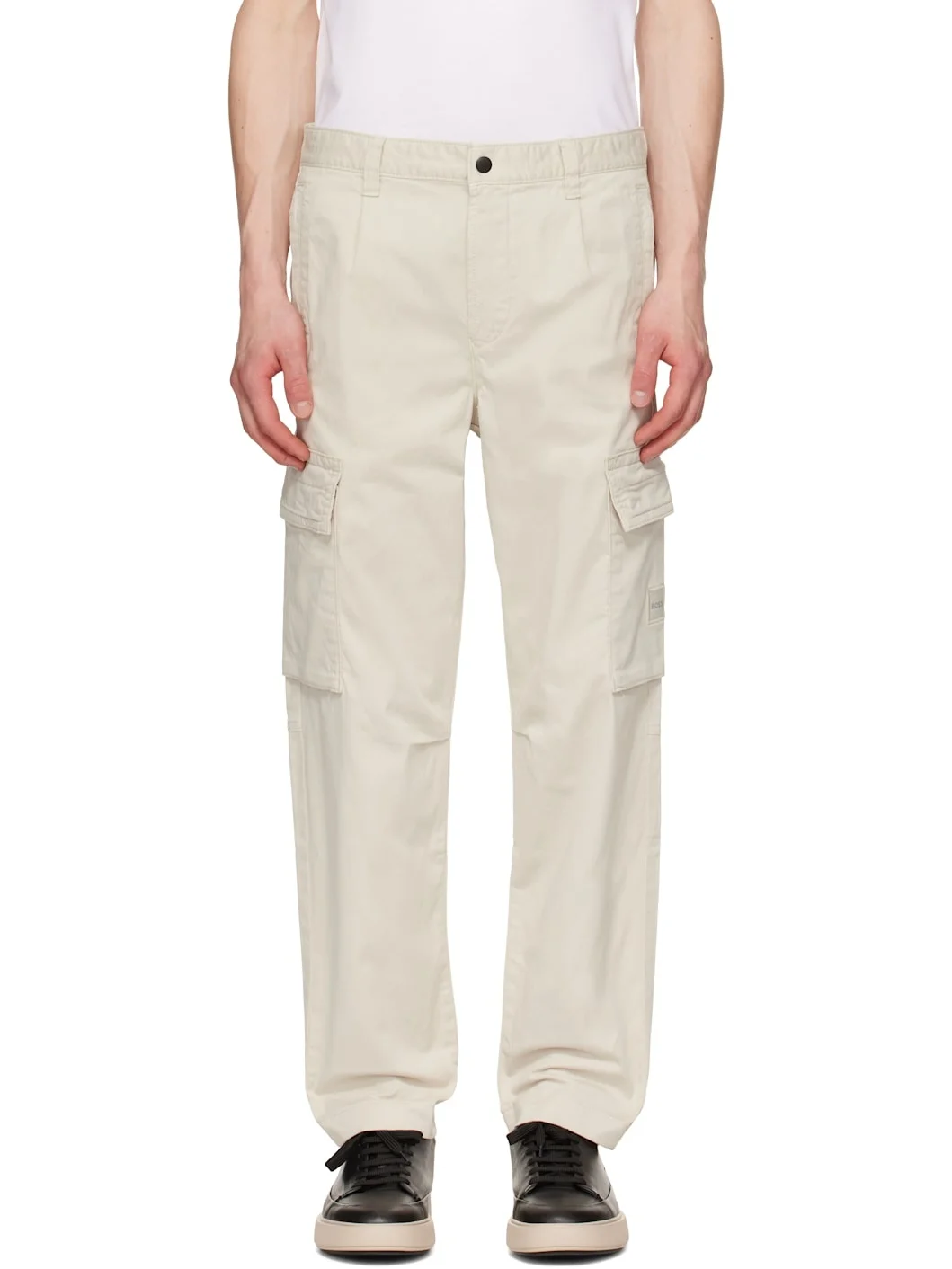 Stretch cotton twill cargo pants. · Concealed drawstring at partially elasticized waistband · Belt loops · Four-pocket styling · Zip fly · Cargo pocket at outseams · Logo patch at outseam Supplier color: Light beige 97% cotton, 3% elastane. Made in Bangladesh 252085M188001