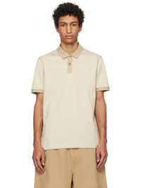 Knit mercerized cotton polo. - Rib-knit spread collar and cuffs - Two-button placket - Logo flag at side seam - Vented side seams Supplier color: Light beige