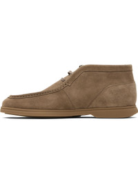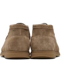 Ankle-high faux-suede desert boots. · Moc toe · Lace-up closure · Logo embossed at outer side · Textured rubber sole Supplier color: Medium beige Upper: synthetic. Sole: rubber. Made in Portugal 252085M224000