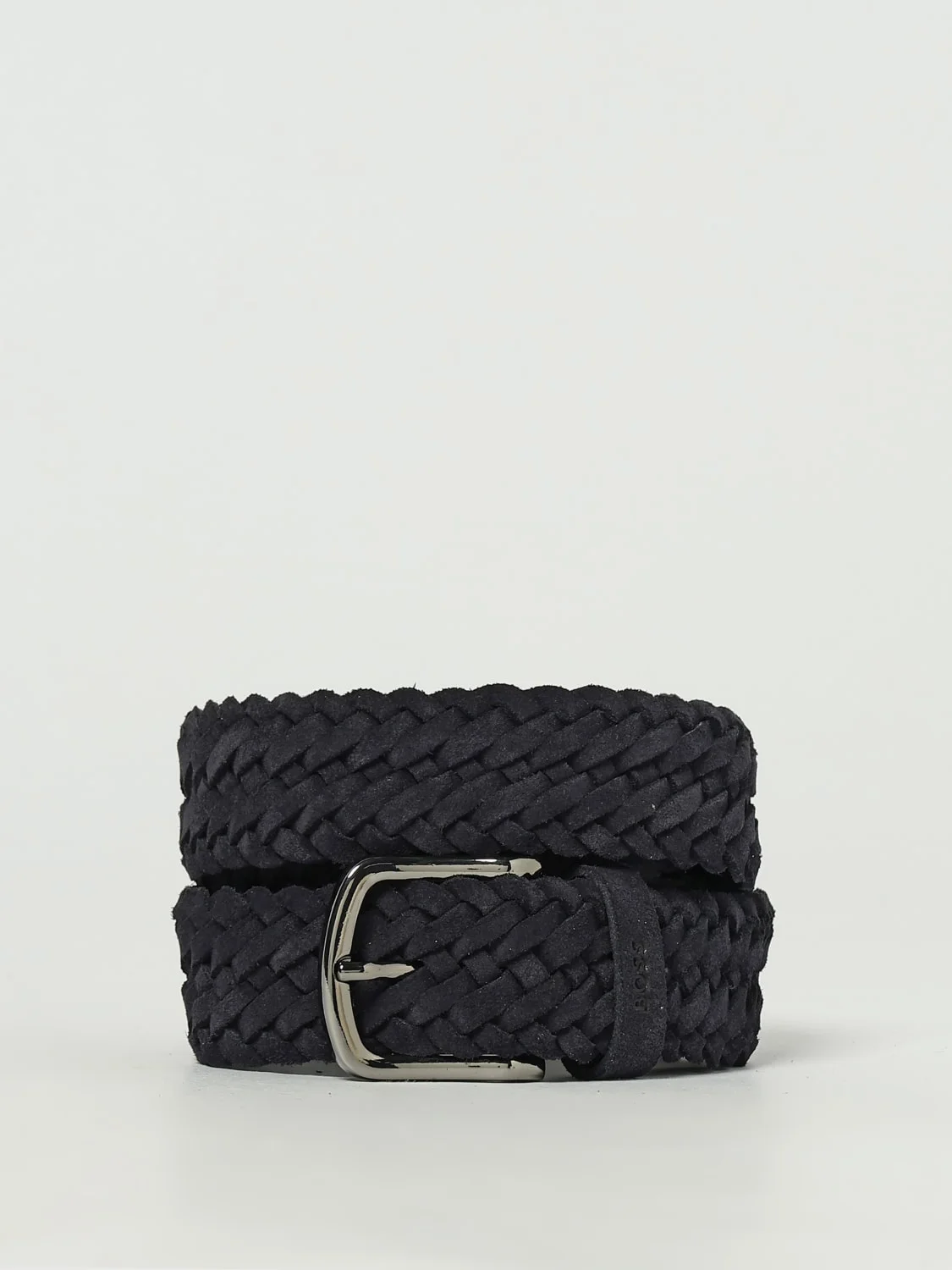 DESCRIPTION - Logo: Engraved - Details: With belt loops - Model: Woven - Closure: With metal buckle - Materials: Suede calfskin - Pattern: Plain-colored DETAILS AND CARE Composition not available SIZE AND FIT Sizes not available Designer code: 50542184 401 Giglio Code: G96005 Designer: Boss Collection: Boss Men Category: Accessories Boss
