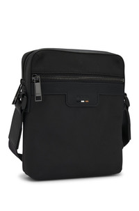 SIZE AND FIT The model wears a size pce. and is 6'2" tall with a, 37" chest, 33" waist and 35" hips. DETAILS Ray_N_NS Zip - 50536169 A modern reporter bag in structured fabric by BOSS Menswear. This accessory has refined trims, including signature detailing, and an adjustable shoulder strap. This product is partly created with polyester. Measurements: 16.5 x 20.5 x 5.5cm Length: 16,5 cm (6.5 inches) Width: 5,5 cm (2.2 inches) Height: 20,5 cm (8.1 inches) Fastening top: Zip closure 1 inside zip pocket 1 inside open pocket Hardware finishing: Polished gunmetal hardware Exterior embossed logo QUALITY & CARE INSTRUCTIONS Quality: 100% Polyester, Lining: 100% Polyester, Facing: 100% Polyamide, 60% Polyurethane, 40% Polyester