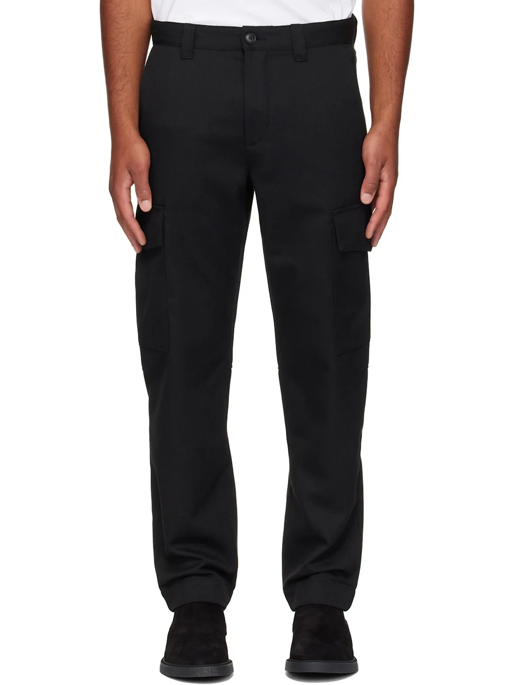 Gabardine cargo pants. · Concealed drawstring at waistband · Belt loops · Four-pocket styling · Zip fly · Cargo pocket at outseams · Logo patch at back pocket Supplier color: Black 85% polyester, 15% wool. Made in Bangladesh 252085M188003