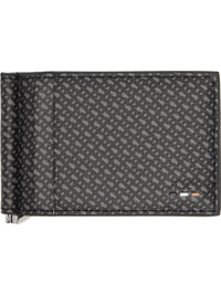Grained faux-leather bifold wallet. · Graphic pattern printed throughout · Embossed logo and tricolor logo hardware at face · Six card slots · Money clip · Buffed faux-leather interior · Moire lining · H2.75" x W4.25" x D0.75" Supplier color: Black Body: 60% recycled polyester, 20% polyurethane, 20% recycled polyurethane. Trim: 62% recycled polyurethane, 30% polyester, 8% polyurethane. Lining: 100% polyester. Made in Cambodia 261085M164016