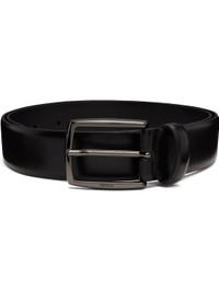 Vegetable-tanned buffed leather belt. · Logo-engraved pin buckle fastening · W1.5" Supplier color: Black Leather. Made in Romania 252085M131016