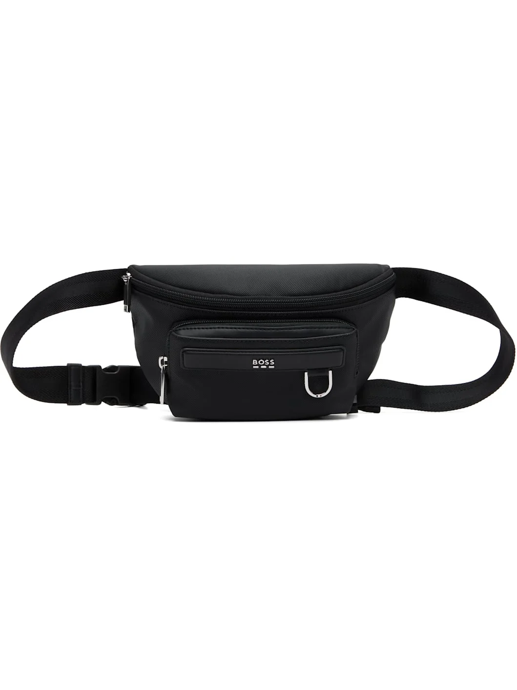 Coated canvas belt bag. · Adjustable press-release crossbody strap · Logo hardware and D-ring at face · Zip pocket at face and back face · Zip closure · Patch pocket at interior · Logo-woven twill lining · H11" x W6" x D4" Supplier color: Black Textile. Made in Cambodia 252085M171011