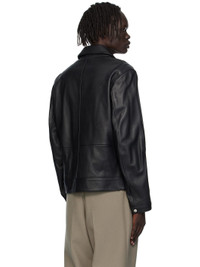 Pebble-grained lambskin jacket. · Spread collar · Zip closure · Zip pockets at waist · Press-stud cuffs · Logo hardware at back collar · Zip pocket at interior · Full satin lining Supplier color: Black Body: 100% lambskin. 54% polyester, 46% viscose. Made in Sri Lanka 252085M181006