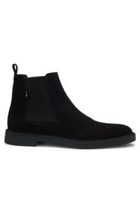 DETAILS With rich suede uppers and a flexible rubber outsole, these BOSS Menswear Chelsea boots will round off any look. Elasticated panels with signature-stripe detail. Fastening top: Slip-on Elastic Fully lined Sole: Other material Packaging: Box Calev_Cheb_sdfb - 50552528 QUALITY & CARE INSTRUCTIONS Upper material: 100% Cow leather, Lining: 100% Cow leather, 71% Polyester, 29% Elastane, Sole: 100% Rubber, Facing: 71% Polyester, 29% Elastane, Innersole: 100% Cow leather