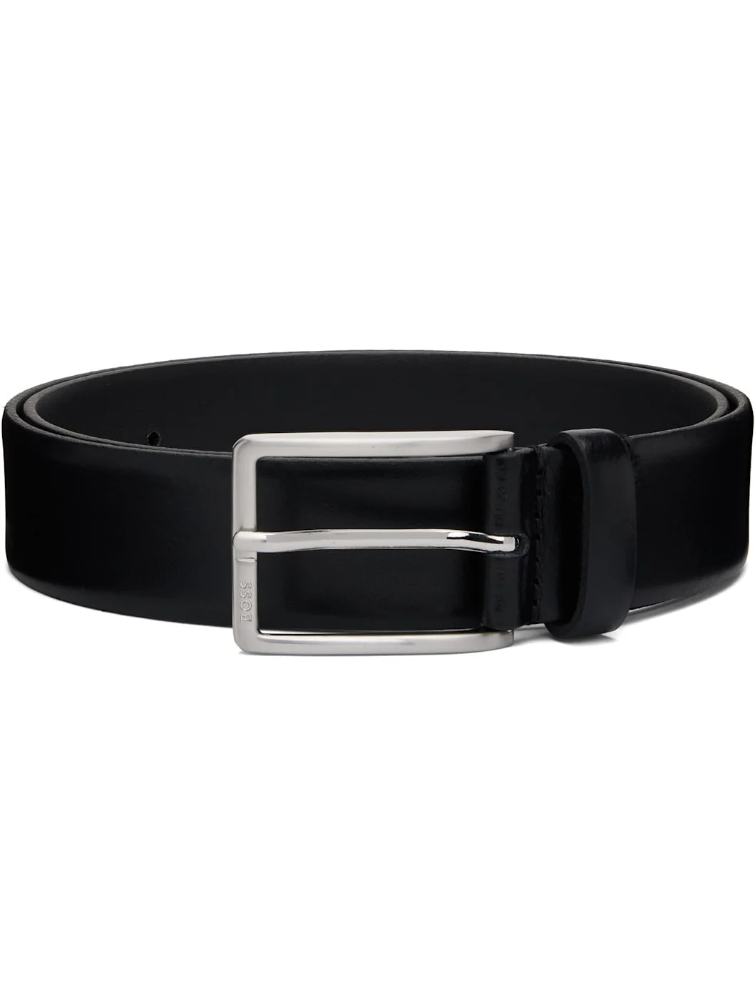 Black Smooth-Leather Logo-Engraved Belt