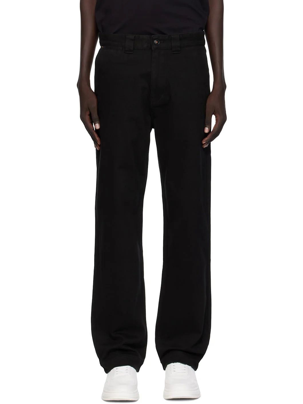Stretch cotton twill trousers. · Straight-leg · Belt loops · Four-pocket styling · Zip fly · Logo patch at back Supplier color: Black Body: 98% cotton, 2% elastane. Pocket lining: 65% polyester, 35% cotton. Made in Bangladesh 252085M191015