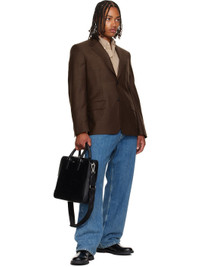 Saffiano leather briefcase. · Twin rolled carry handles · Adjustable and detachable crossbody strap · Zip pocket at top · Logo hardware at face · Luggage strap at back face · Two-way zip closure · Zip pocket at interior · Laptop compartment · Logo-woven satin lining · H11" x W14.5" x D3" Supplier color: Black Leather. Made in Romania 252085M167006