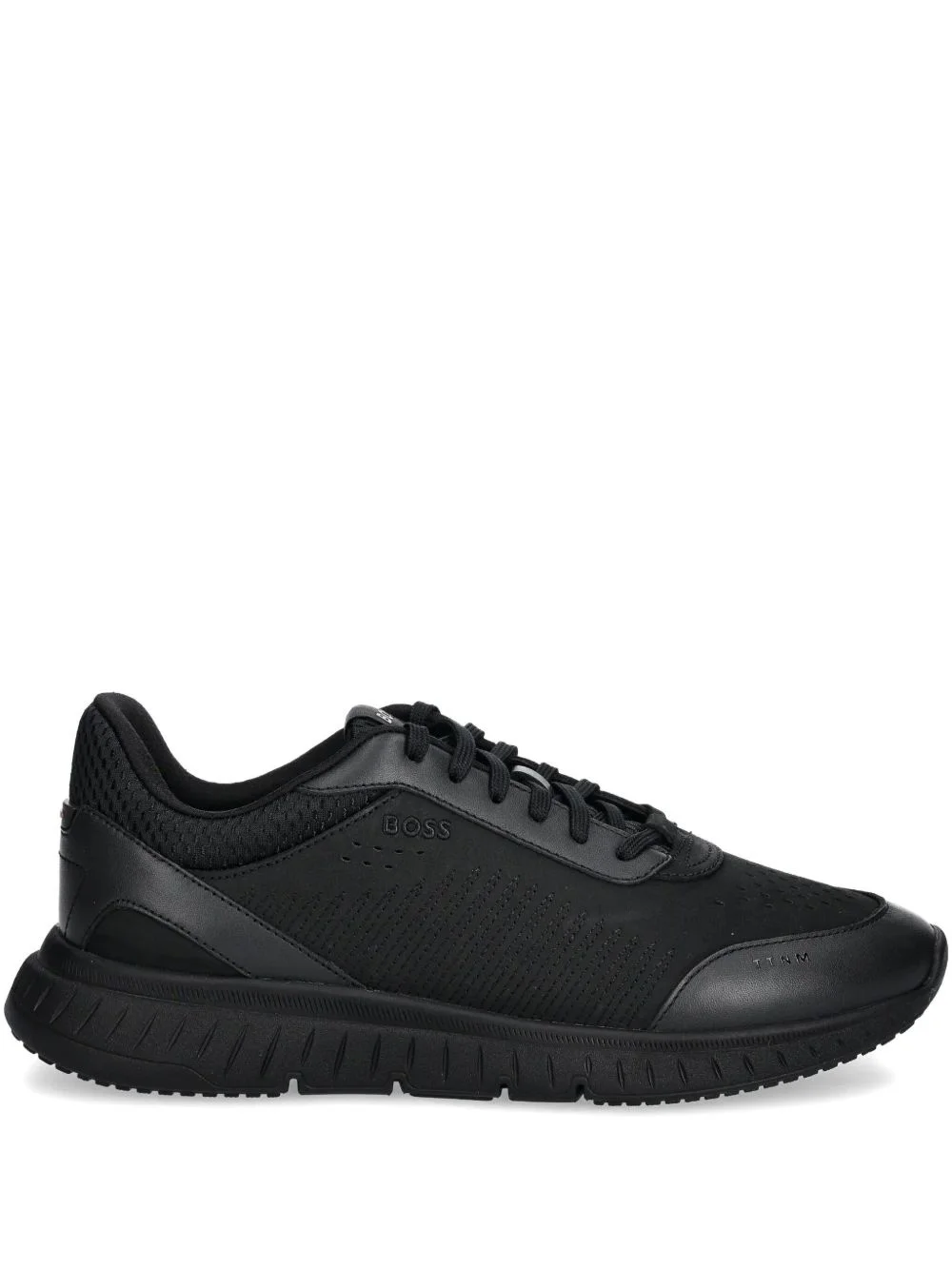 lightweight sneakers Highlights - Black - Front lace-up fastening - Padded ankle - Flat rubber sole - Panelled design Imported Composition Sole: Rubber 100% Outer: Calf Leather 100%, Fabric 100% Lining: Fabric 100%