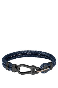BLUE BRAIDED-LEATHER CUFF WITH BLACK CARABINER CLOSURE
