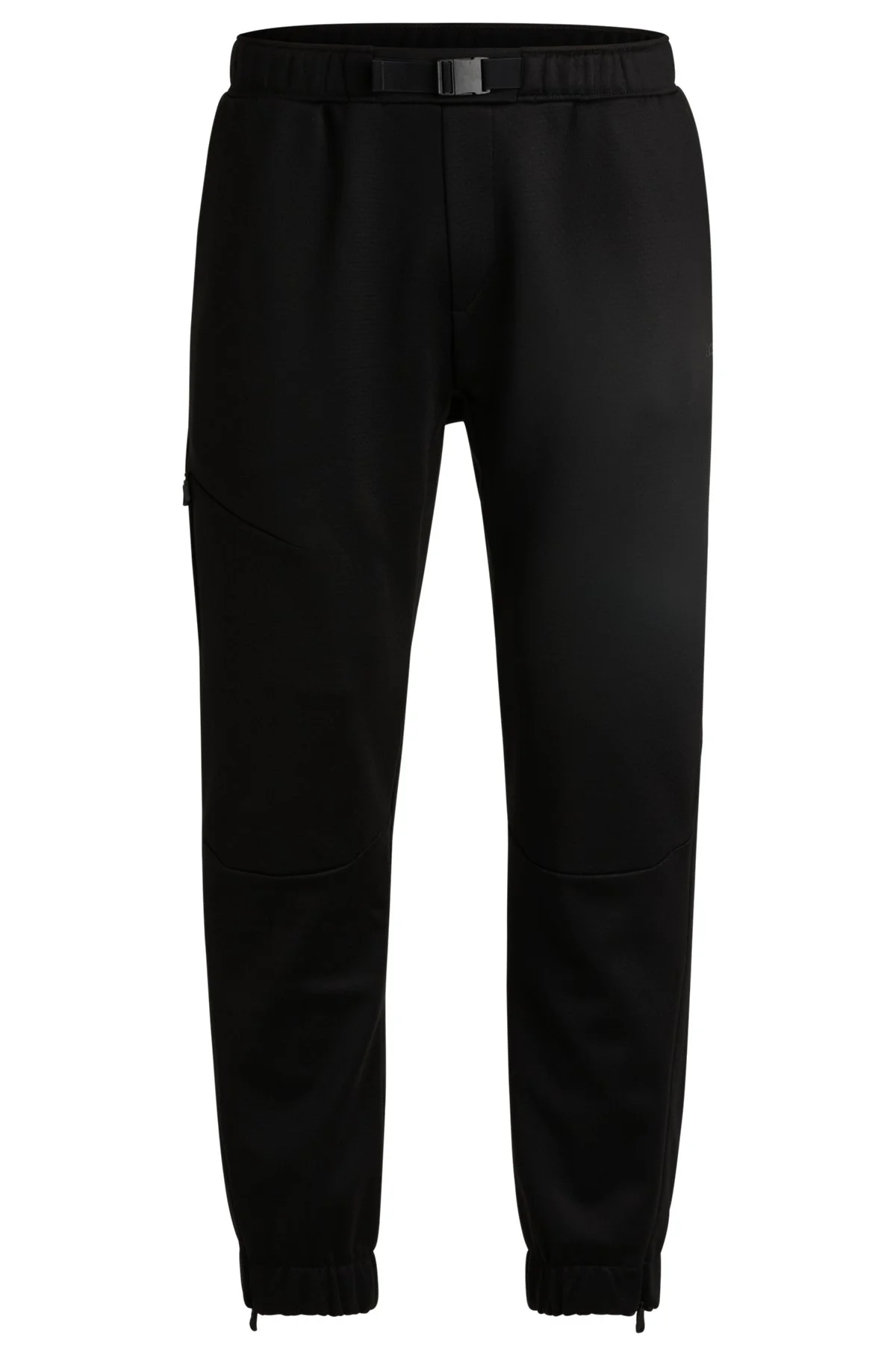 SIZE AND FIT The model wears a size M and is 6'2" tall with a, 0" chest, 28" waist and 36" hips. DETAILS Hariq - 50523678 Regular-fit tracksuit bottoms in bonded fleece by BOSS. This casual pair is designed with an adjustable belt and logo detailing. Regular fit Buckle closure Pockets bottom front: Side pockets Pockets bottom back: Flap pocket QUALITY & CARE INSTRUCTIONS Do Not Bleach Do Not Tumble Dry Do Not Dry Clean Quality: 97% Polyester, 3% Elastane Iron Low Heat Machine Wash Cold Gentle