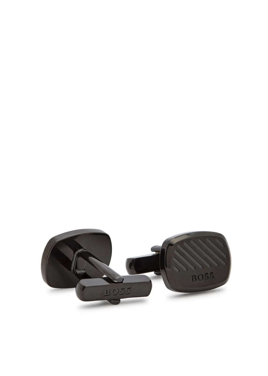 Info & Care Boss metal cufflinks Engraved logo and stripes Presented in a designer-stamped box Size & Fit Face dimensions: 1.8cm x 1.2cm x 0.5cm