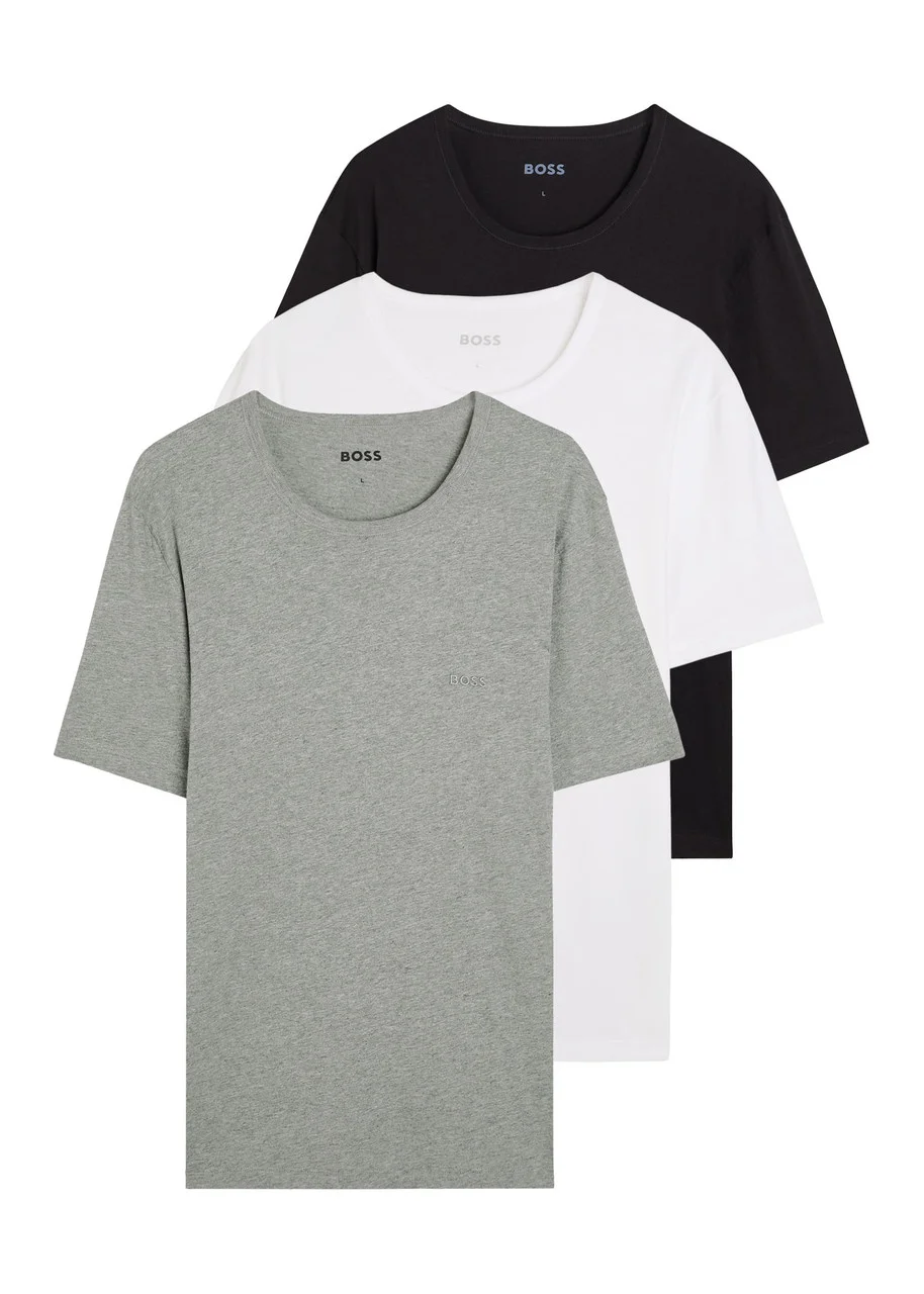 Info & Care Boss cotton T-shirt Set of three Ribbed crew-neck, logo embroidery at chest Slips on 100% cotton Machine wash Size & Fit Length shoulder to hem: 27 inches/ 68.5cm Midweight Regular fit Model is 6'1"/ 185cm, chest size 38.5 inches and wears a size medium