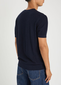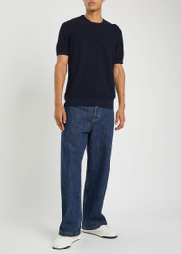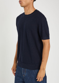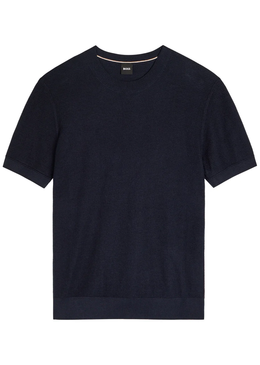 Info & Care Boss cotton-blend T-shirt Crew-neck, designer tag at side, ribbed trims, textured Slips on 50% cotton, 50% lyocell Machine wash Size & Fit Length shoulder to hem: 27 inches/ 68.5cm Midweight Regular;fit Model is 6'1"/ 185cm, chest size 36 inches and wears a size medium