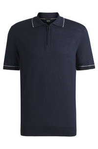 SIZE AND FIT The model wears a size M and is 6'2" tall with a, 33" chest, 27" waist and 35" hips. DETAILS H-Jiovanotto - 50537640 With tipping and a sporty zip placket, this BOSS Menswear sweater is a casual must. Cut to a straight fit in a summery blend. Regular fit Neckline: Zip neck Short sleeves Standard length QUALITY & CARE INSTRUCTIONS Cold, gentle machine wash; reduced spin speed. Do Not Tumble Dry Quality: 56% Linen, 44% Viscose (10% recycled) Reduced Dry Clean Iron Low Heat Do Not Bleach