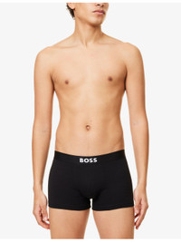 PRODUCT DETAILS - BOSS ONE x David Beckham pack of three stretch-cotton trunks - 95% cotton, 5% elastane; trims 57% polyamide, 30% polyester, 13% elastane - Pulls on - Mid-rise, branded elasticated waistband, supportive panel at front - Machine wash at 40°C - Model is 6ft 2in/1.88m and wears a size medium - Lightweight, stretchy - For hygiene reasons, we are unable to exchange or refund this product, unless faulty. Ref: R04439338