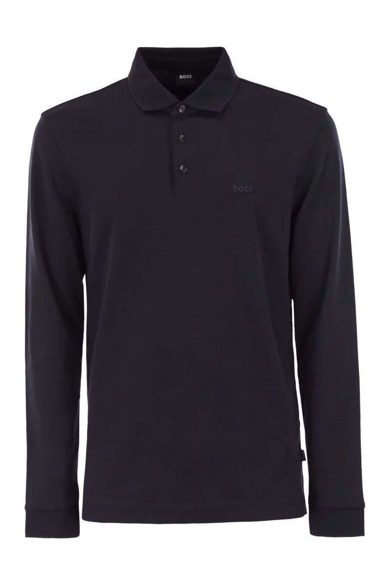 A true staple in any man's wardrobe, this long-sleeved polo shirt by BOSS Menswear is a refined classic. Crafted from soft cotton with a straight fit. - Regular fit - Flat knit collar - Number of buttons: 3 - Long sleeves - Standard length DESIGNER ID: 50468392 404 Gender: Men Material: 100% COTTON Color: BLUE Made in: Imported Product ID: 50468392 404 *Import tax/duty will be calculated at checkout (If applicable)
