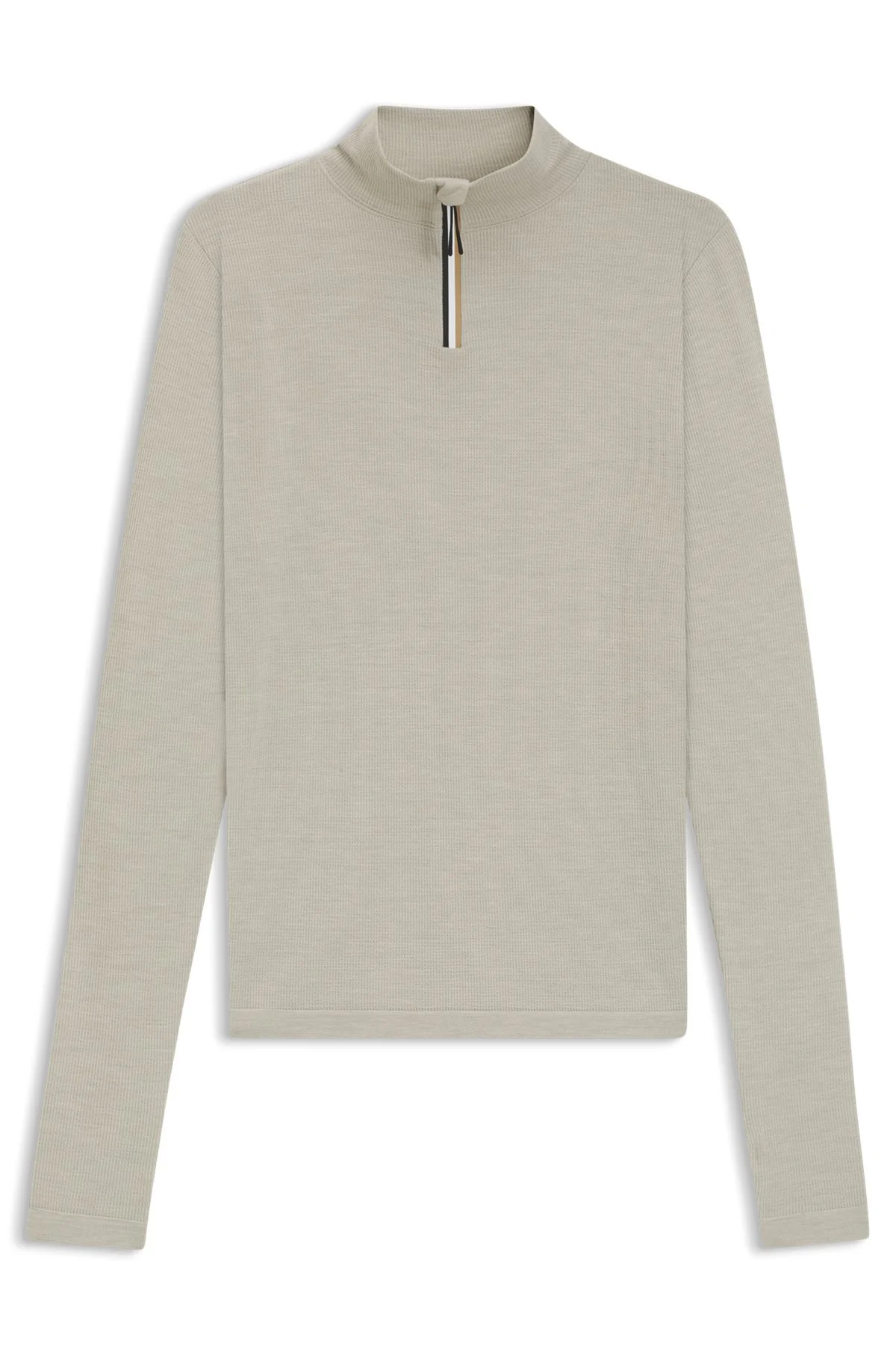 SIZE AND FIT The model wears a size M and is 6'2" tall with a, 38" chest, 30" waist and 37" hips. DETAILS Insulating yet breathable, this men's BOSS Ski base layer top is designed for flexible comfort. Zip neck with signature stripe. Wool blend with added stretch. Take to the mountains in style with BOSS Ski: a collection of high-performance pieces and bold apres-ski designs. Albiez_SKI - 50544368 QUALITY & CARE INSTRUCTIONS Do Not Iron Material: 57% Wool, 40% Polyamid, 3% Elastane Do Not Tumble Dry Do Not Bleach Cold, gentle machine wash; reduced spin speed. Do Not Dry Clean